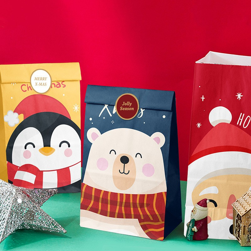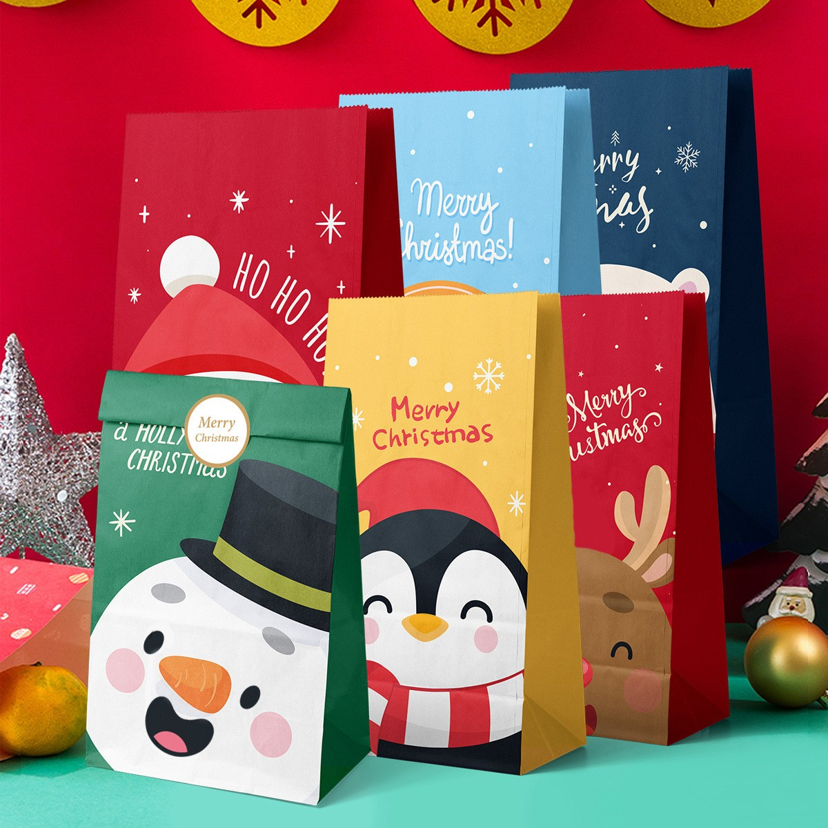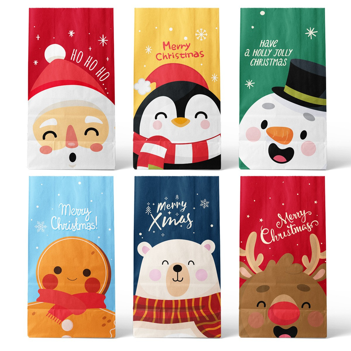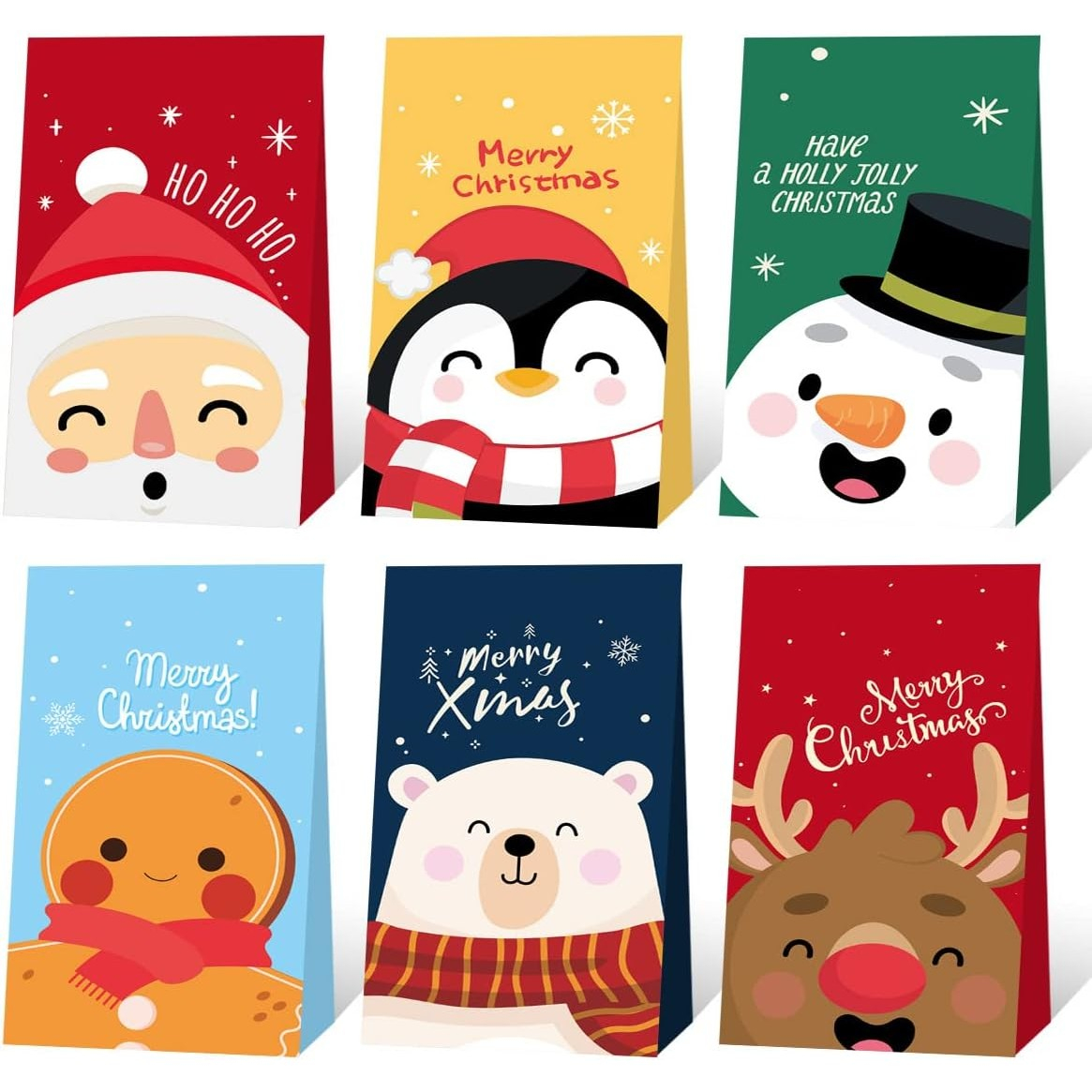 Set 12 Pungi de Cadou, Flippy®, Tematica Crăciun, cu Personaje, 12 Stickere Incluse, 24 x 13 x 8 cm, din Hartie, Multicolor