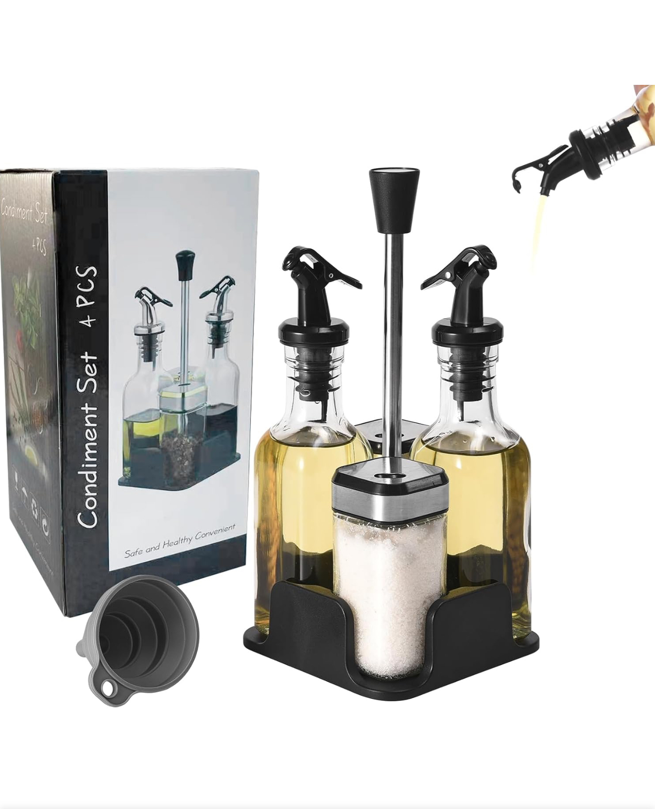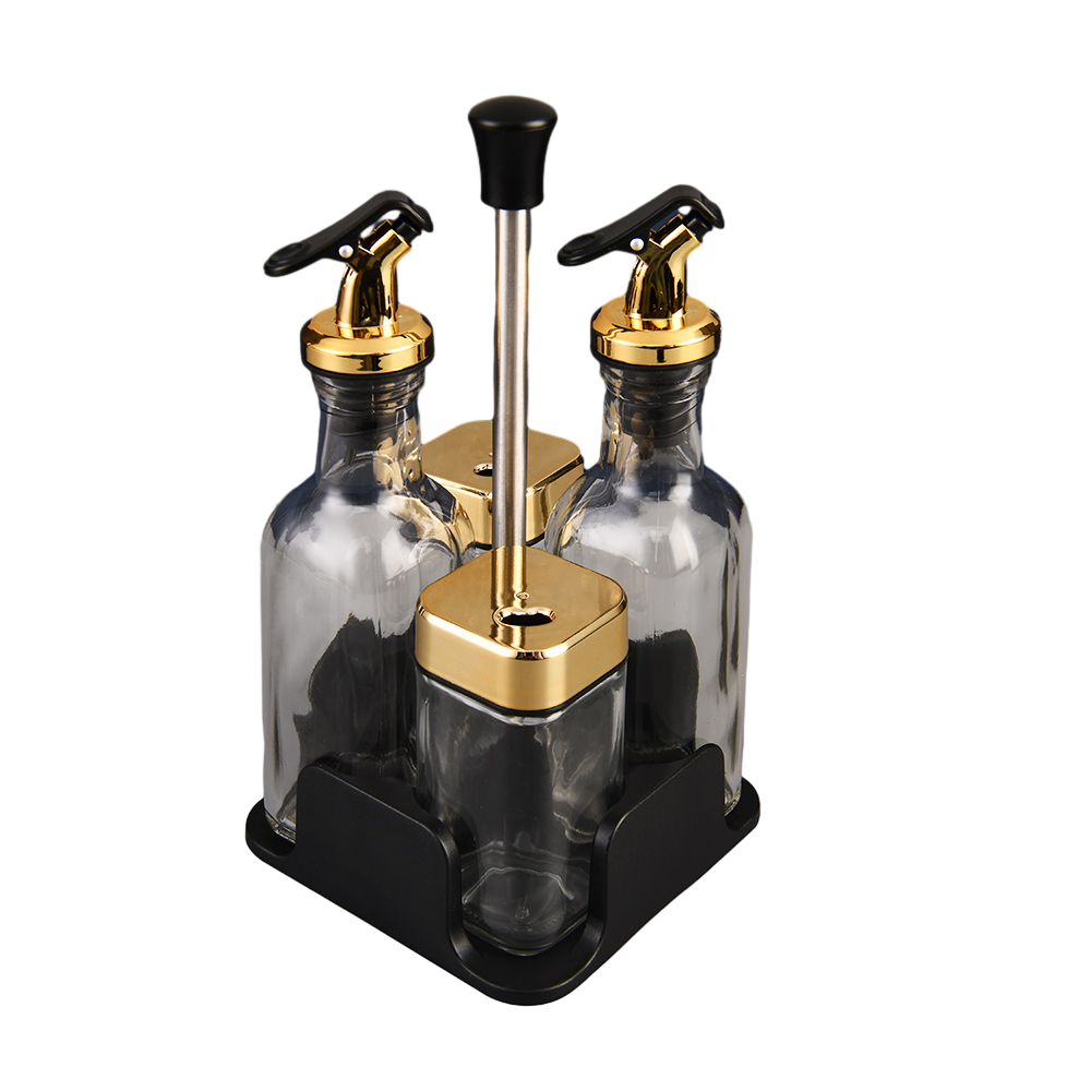 Set complet: Include 4 piese esențiale pentru condimentarea preparatelor – totul organizat la îndemână.