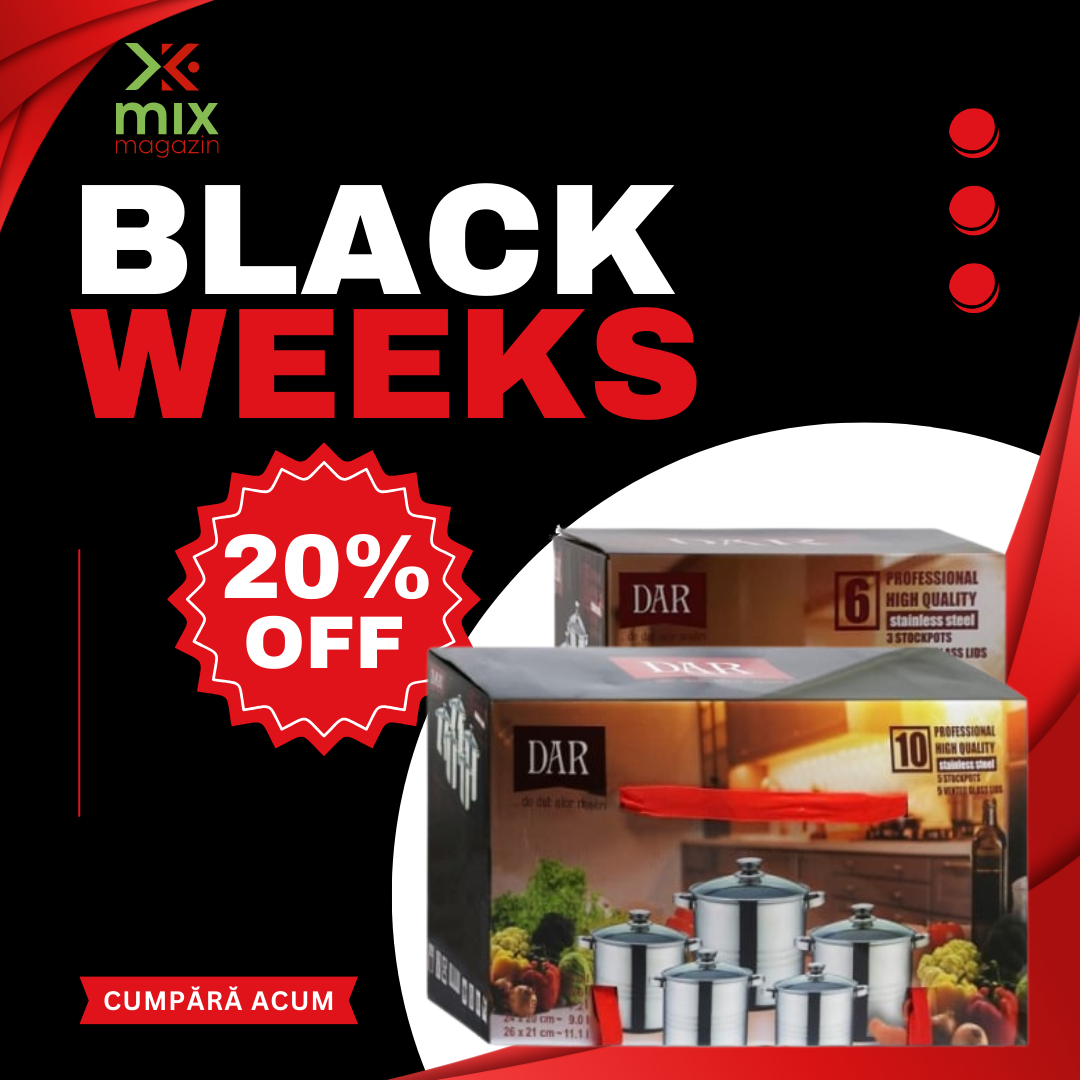 Cu oferte de top și prețuri imbatabile, Black Weeks 2025 este ocazia perfectă pentru a face toate cumpărăturile pe care le-ai planificat, dar și pentru a-ți completa lista de cadouri pentru sărbători. Dă startul la shopping și bucură-te de reduceri pe care nu le vei mai întâlni prea curând!