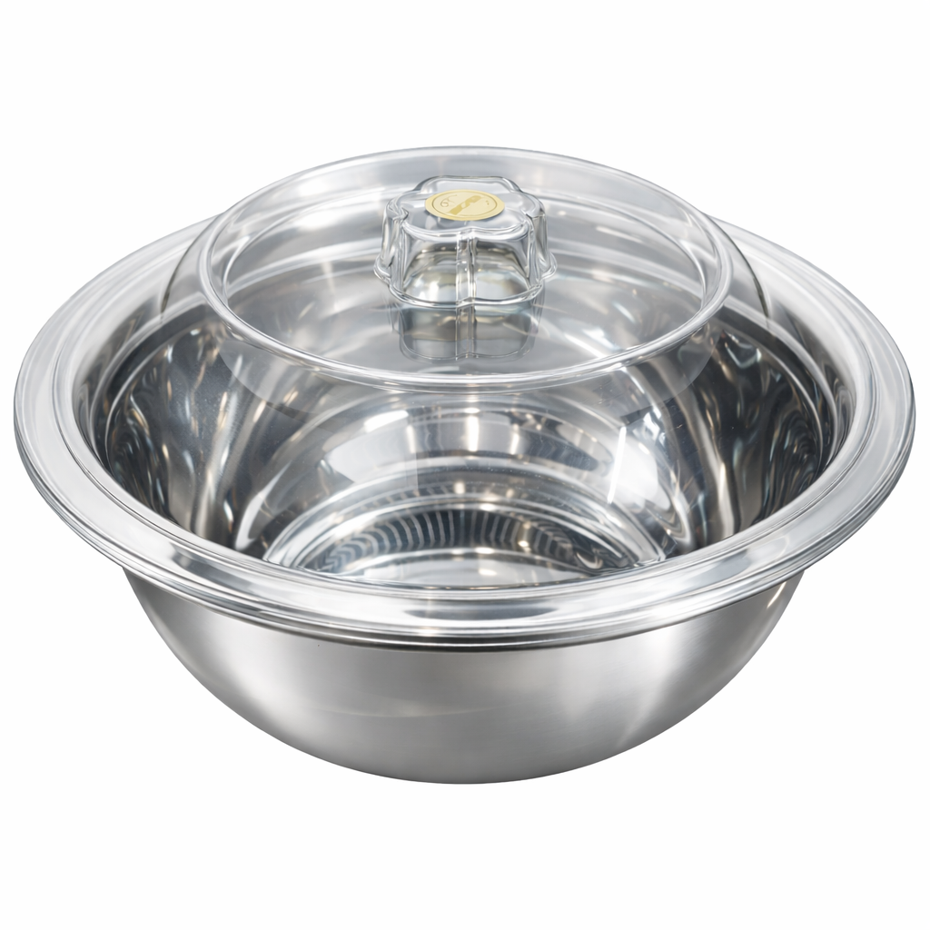 Practic și rezistent, bolul cu capac de 30 cm este ideal pentru pregătirea, servirea și depozitarea alimentelor în orice bucătărie. Fabricat din fier durabil, oferă stabilitate și rezistență în timp, iar capacul din PVC transparent asigură protecție eficientă împotriva prafului și menține prospețimea preparatelor.