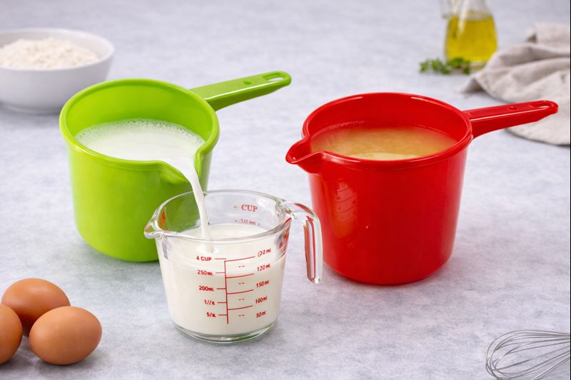 Designul ergonomic, cu maner rezistent si cioc pentru turnare usoara, asigura o utilizare confortabila si precisa. Cana este realizata din material plastic durabil, fiind usoara si usor de curatat. Dimensiunile compacte permit depozitarea eficienta in bucatarie.