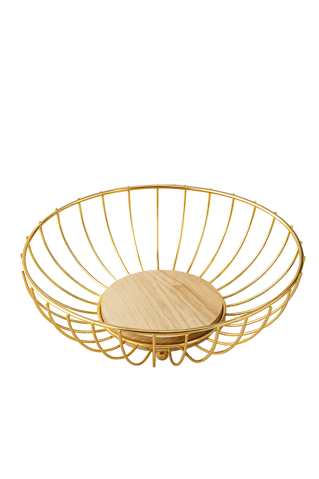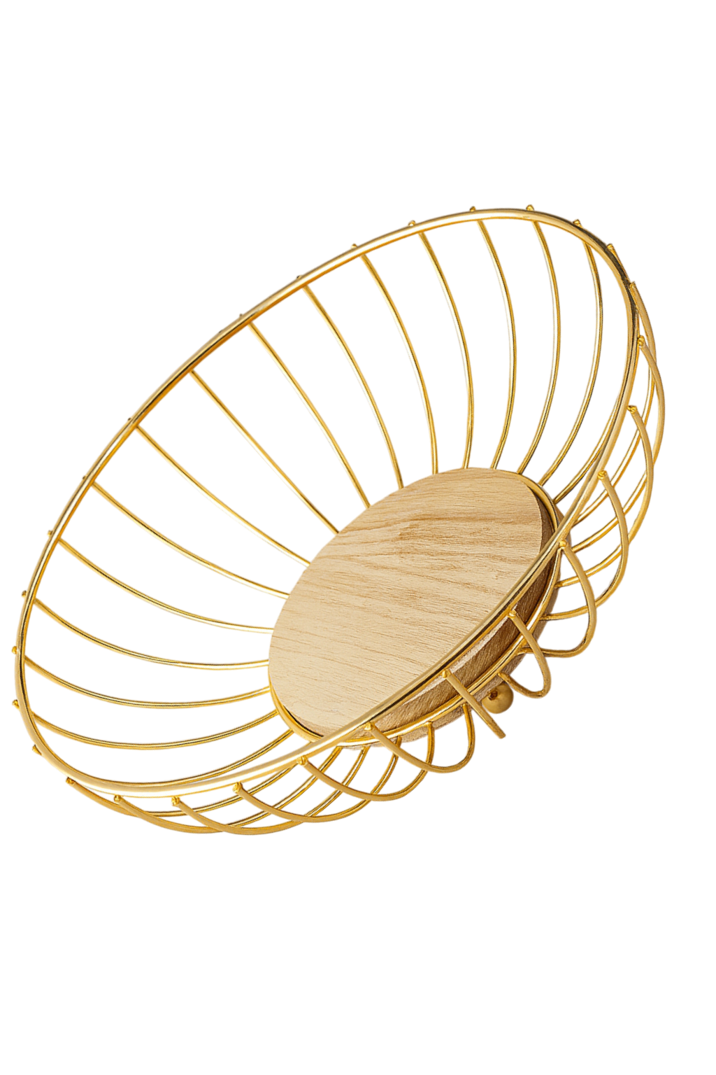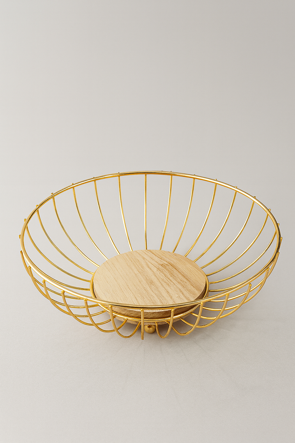 Baza rotunda din lemn adauga caldura si stabilitate, iar combinatia de metal si lemn se potriveste perfect atat in interioare moderne, cat si in stil clasic sau rustic. Ideala pentru fructe, chifle, patiserie sau ca suport decorativ pentru aranjamente de sezon.