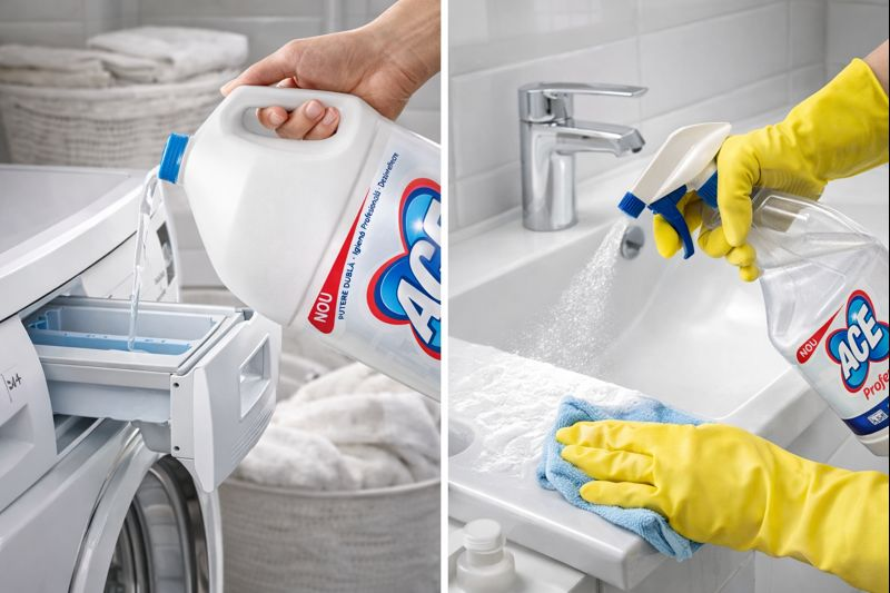 ACE Inalbitor Profesional 4L este solutia completa pentru curatenie profesionala, igienizare eficienta si rufe albe impecabile.