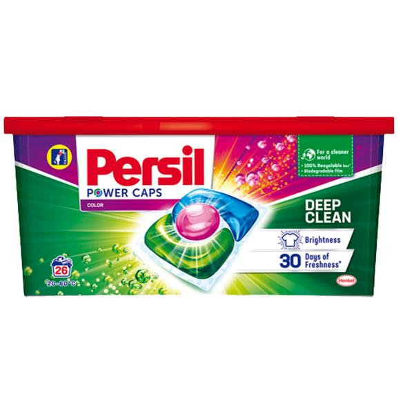 Detergent Capsule pentru Rufe Colorate - Persil Power Caps Color Deep Clean, 26 buc: detergent capsule, pentru rufe colorate, ce curata in profunzime, actionand eficient impotriva petelor dificile. Patrunde adanc in tesatura, eliminand murdaria si asigurand prospetime de lunga durata. Este eficient chiar si la tempeaturi scazute, de pana la 20°C.