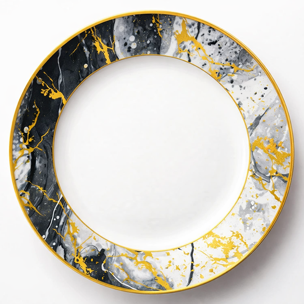 Farfurie Întinsă Opal Noir Aureum 27 cm – Eleganță Marmurată,