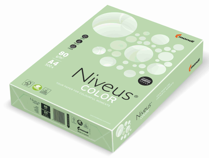 Din gama verde, hartia Niveus Color este un produs ecologic si sigur pentru copii, respectand criteriile chimice ale standardului EN-71. Detine certificari FSC si Ecolabel, este biodegradabila si reciclabila si nu contine metale grele, conform directivei 94/62/CE.