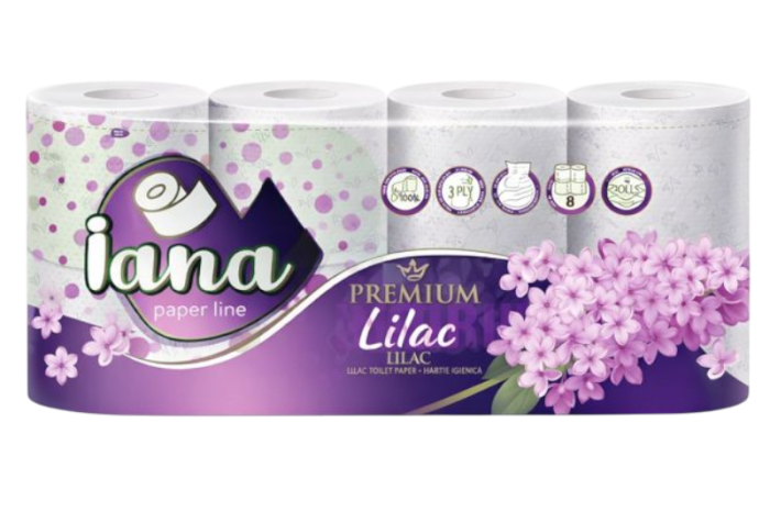 Hartia igienica IANA Premium Liliac 3 straturi, 8 role imbina calitatea, confortul si prospetimea intr-un produs ideal pentru o igiena eficienta si placuta zi de zi.