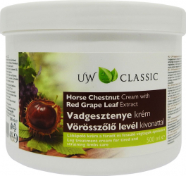 UW Crema de castane cal cu extract din frunze de vita de vie rosie. Extractul de castan salbatic stimuleaza circulatia sanguina si contribuie astfel la pastrarea elasticitatii peretilor vaselor de sange.