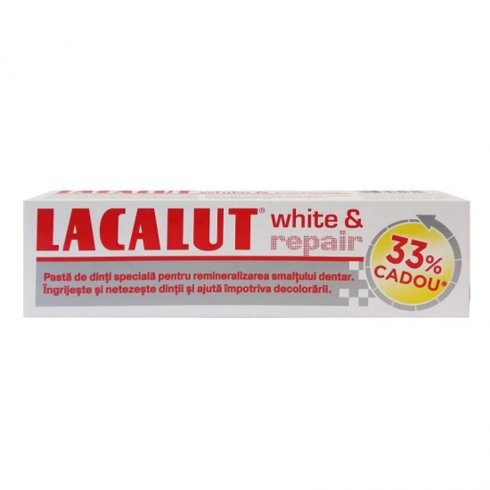 Lacalut White & Repair este o pasta de dinti medicinal care are rolul de a ingriji dintii si de a preveni demineralizarea acestora. Pasta de dinti Lacalut White & Repair iti reda zambetul alb si stralucitor si previne aparitia placii bacteriene.