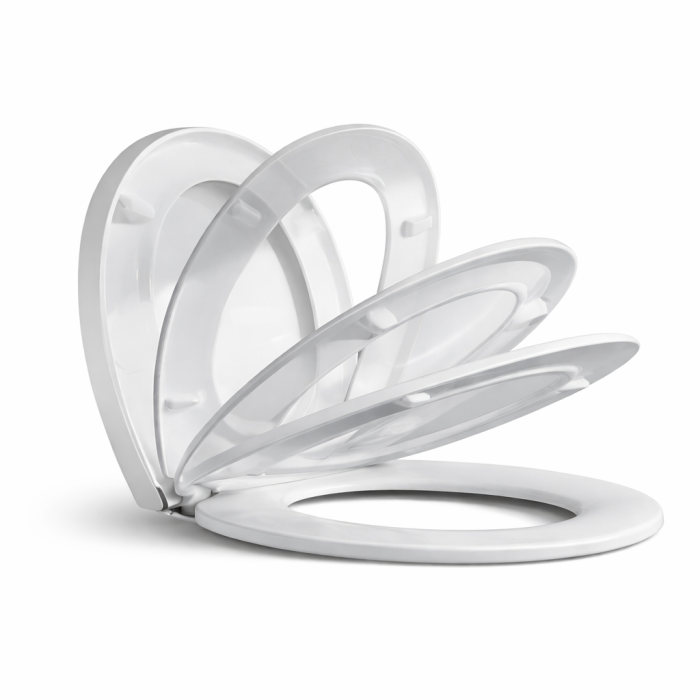 Datorită sistemului de închidere lentă cu amortizor, capacul se închide silențios și controlat, eliminând trântirea și zgomotul neplăcut. Acest mecanism protejează atât vasul de toaletă, cât și capacul, prelungind durata de viață a produsului. Suprafața sa netedă oferă un nivel ridicat de confort și este ușor de curățat, menținându-și aspectul plăcut în timp, fără a se decolora.