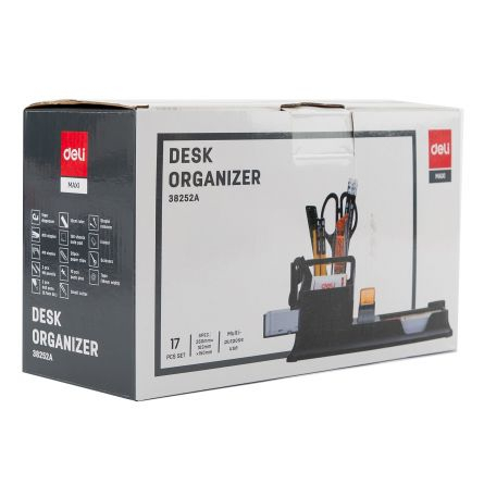 Suportul de birou echipat Deli este solutia completa pentru organizarea eficienta a spatiului de lucru, fiind ideal pentru birou, scoala sau uz casnic. Cu un design practic si compact, acesta dispune de 7 compartimente si include 16 accesorii esentiale pentru activitatile zilnice.