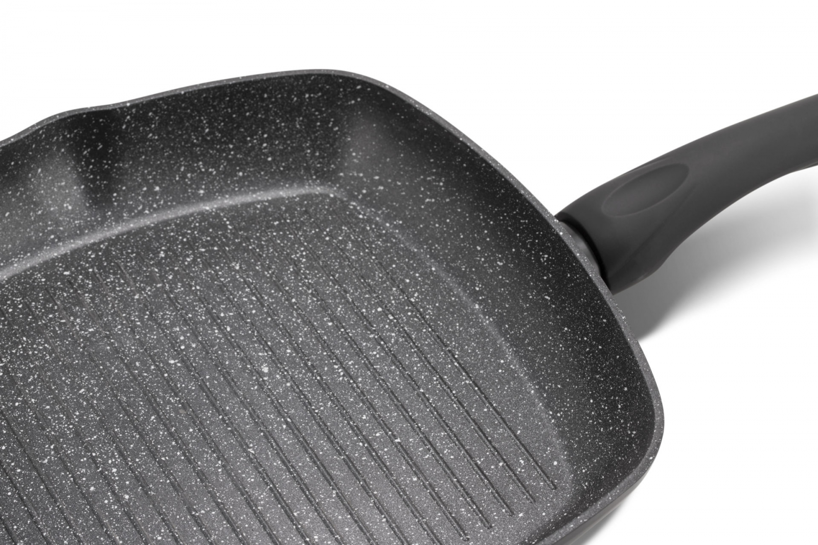 Material: aluminiu presat Acoperire: strat ceramic-marmură, antiaderent, fără PFOA Designul ușor oferă o conductivitate termică excelentă Rezistent la zgarieturi si temperaturi ridicate de pana la 180 de grade Celsius Potrivit pentru toate tipurile de aragaz, inclusiv cu inducție Setul contine 2 tigai cu diametrul de 20 cm, 24 cm si 1 tigaie cu diametrul de 28 cm.