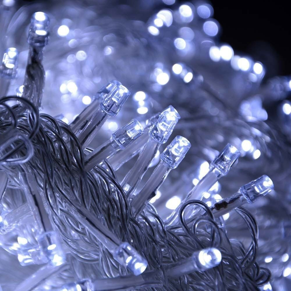 Instalatie Craciun, 39 m, 1133 Led-uri ,Franjuri, Alb rece, 8 jocuri de lumini, Transformator cu telecomanda, Interconectabila, Prelungitor 5 m inclus, Fir Negru