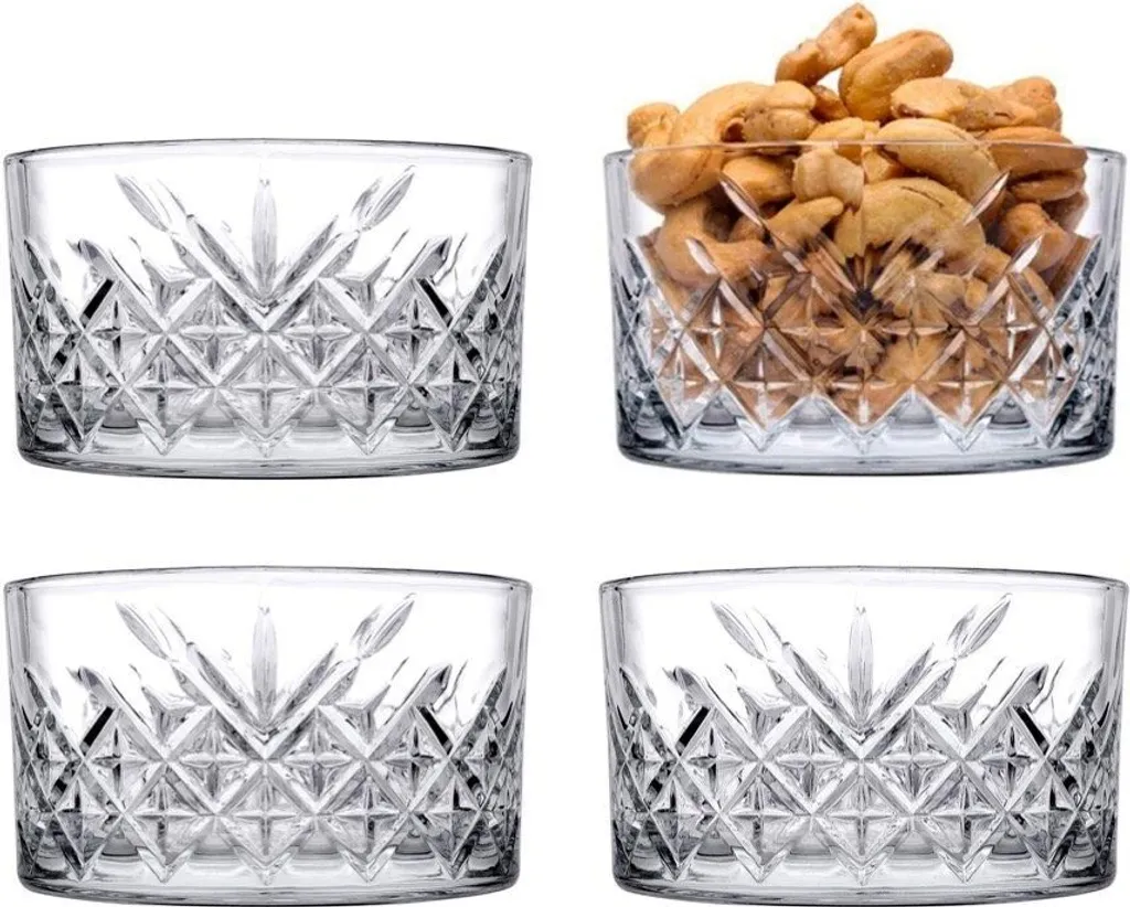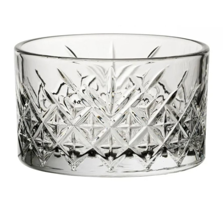 Bolul din sticla TIMELESS 235cc face parte din eleganta colectie PASABAHCE TIMELESS, recunoscuta pentru designul sau sofisticat si detaliile inspirate din cristalul slefuit. Fabricat din sticla transparenta de inalta calitate, acest bol aduce un plus de rafinament si stil oricarei mese, fiind perfect pentru servirea deserturilor, salatelor, gustarilor, sosurilor sau a aperitivelor.