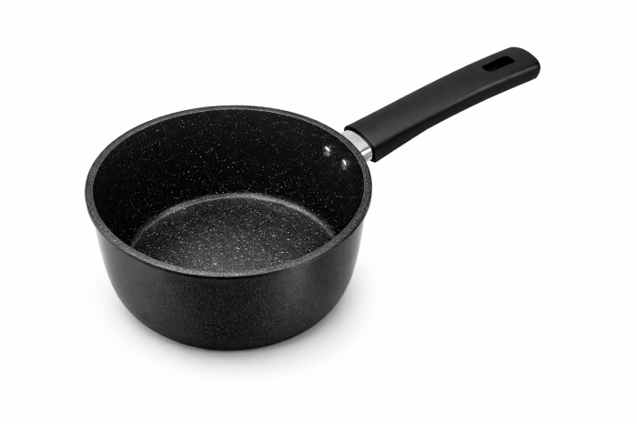 Interiorul cu strat antiaderent marmorata previne lipirea alimentelor, reduce necesarul de ulei si faciliteaza curatarea rapida. Manerul ergonomic din PVC ramane rece la atingere, oferind confort si siguranta in timpul utilizarii.