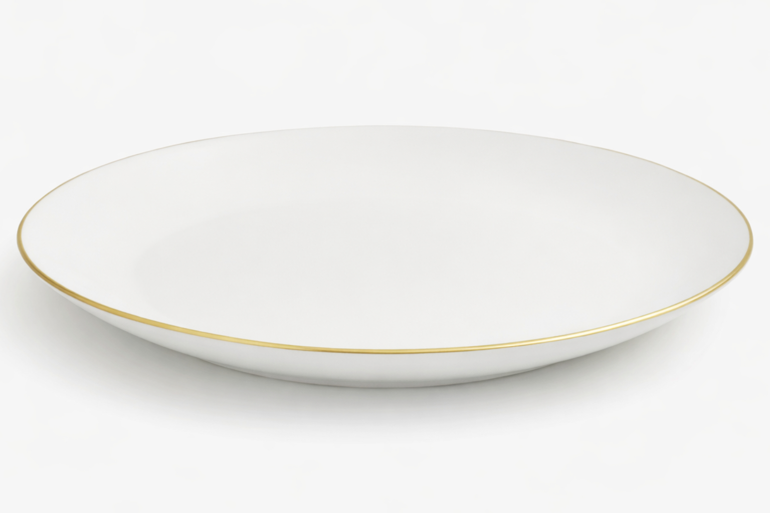 Farfurie Întinsă Opal Elegance Alb 25 cm – Margini Aurii