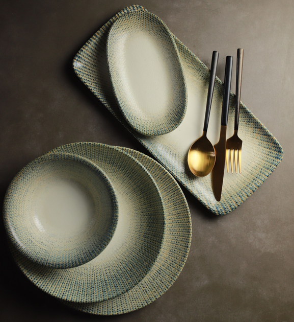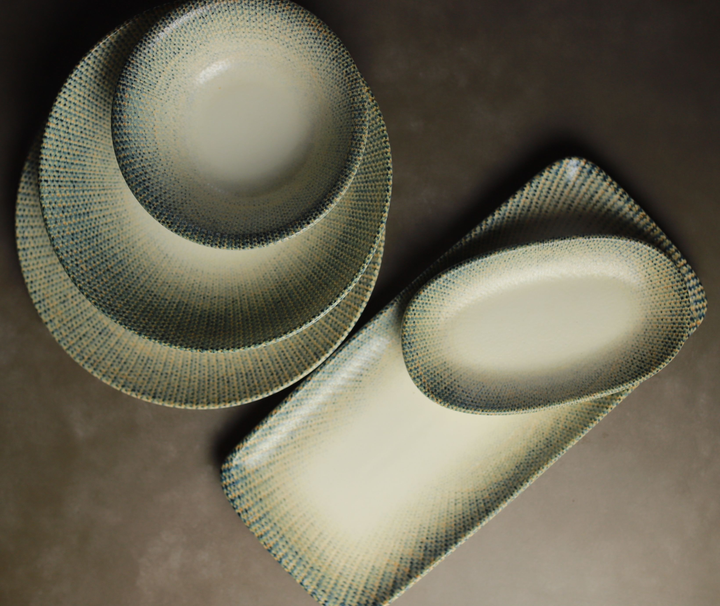 Fiecare piesa din colectia Sway este vopsita manual, ceea ce face ca fiecare farfurie sa fie unica. Pigmentii aplicati sub glazura confera rezistenta superioara culorii, mentinand vibratia tonurilor chiar si dupa utilizare indelungata.