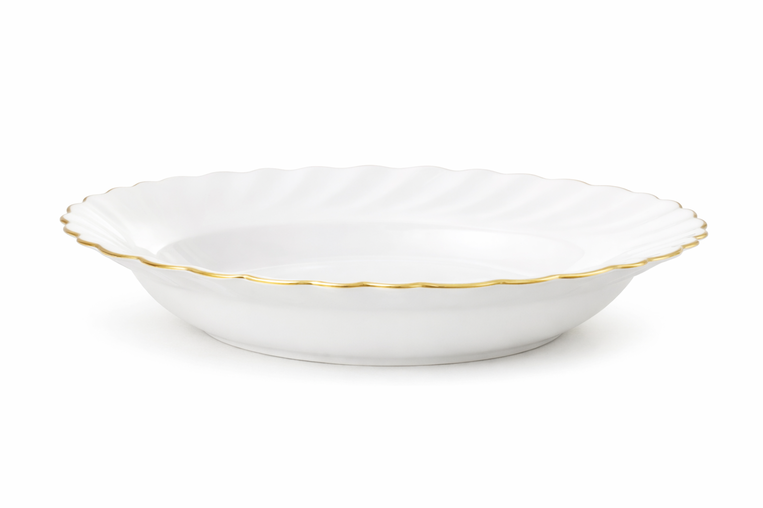 FARFURIE OPAL ADÂNCĂ ALB 22,5 CM – MARGINI AURII