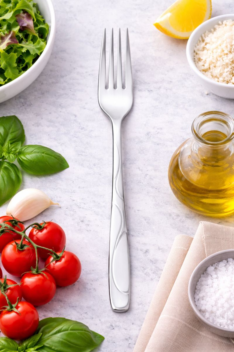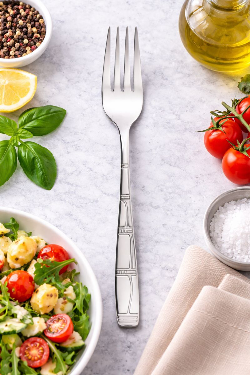 Furculita metalica decorativa, cu lungimea de 20 cm, este un accesoriu practic si elegant, potrivit pentru utilizarea zilnica sau pentru mese speciale. Fabricata din inox rezistent, aceasta ofera durabilitate, stabilitate si o utilizare confortabila in timp.